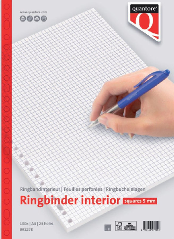100 vel ringbandblaadjes Quantore A4 23-gaats ruit 5