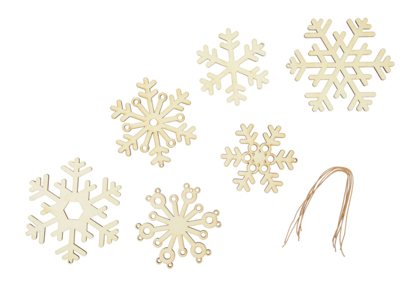 6x Houten hangers naturel 11x11cm - sneeuwvlokken
