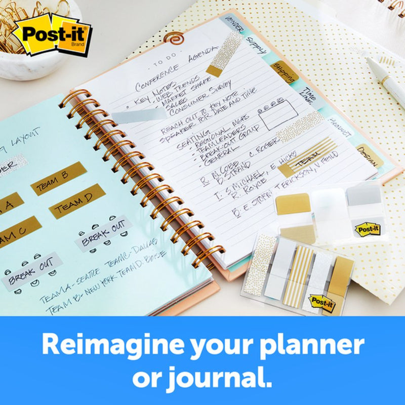 - Post-it® Printed Index Metallic collectie maken organisatie stijlvol en leuk.