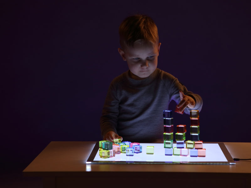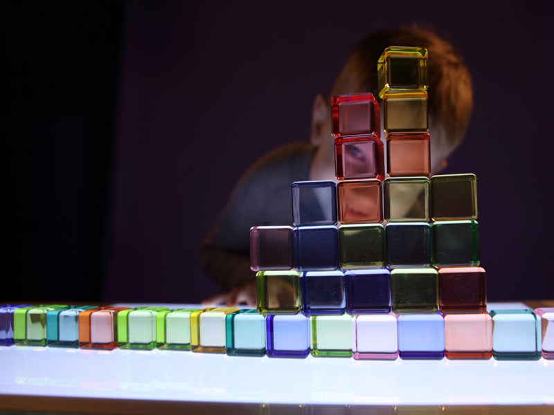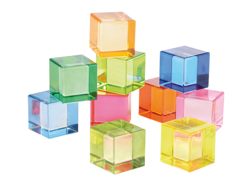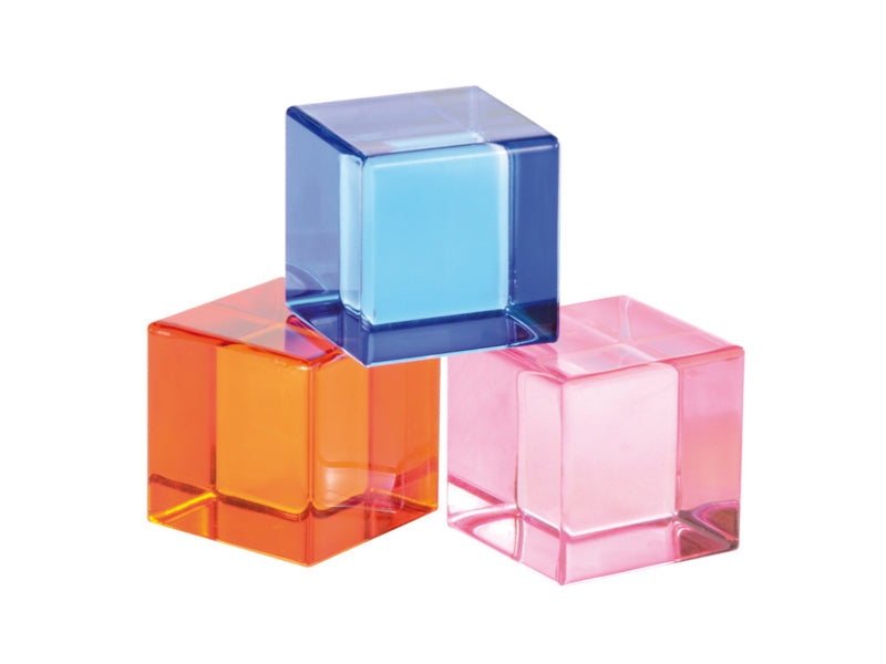 Deze kleurrijke kubussen met afgeronde hoeken zijn een leuke aanvulling op elke speelkamer. De blokjes zijn prettig in gebruik en leuk om naar te kijken. Ze kunnen worden gebruikt in vrij spel, als bouwstenen of bij het leren van de kleurnamen. Gebruik de heldere kubussen in combinatie met een lichtpaneel om het volledige effect van de felle kleuren te bereiken.