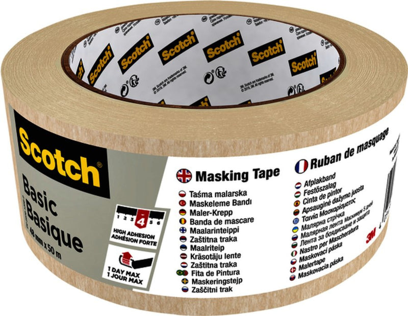 - Scotch Basic afplaktape is een beige afplaktape voor onkwetsbare ondergronden.