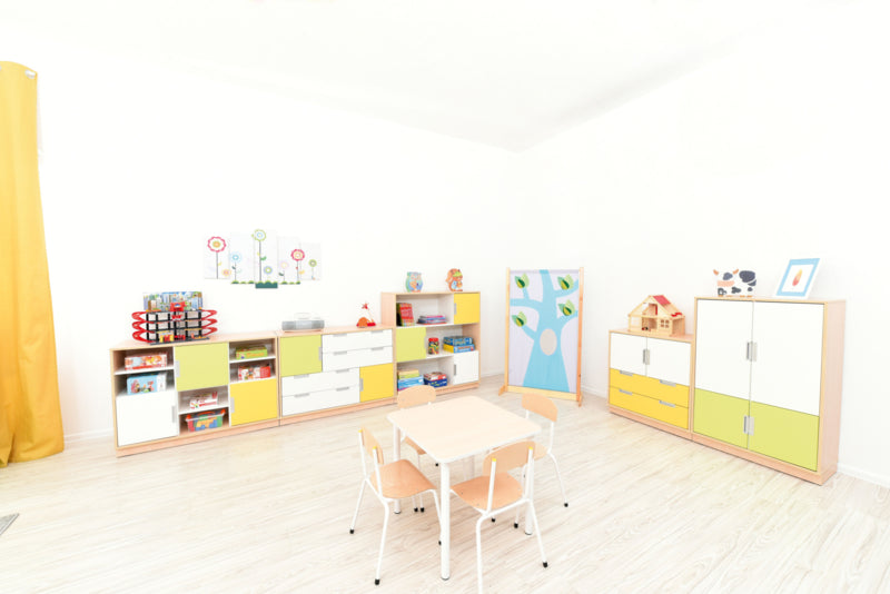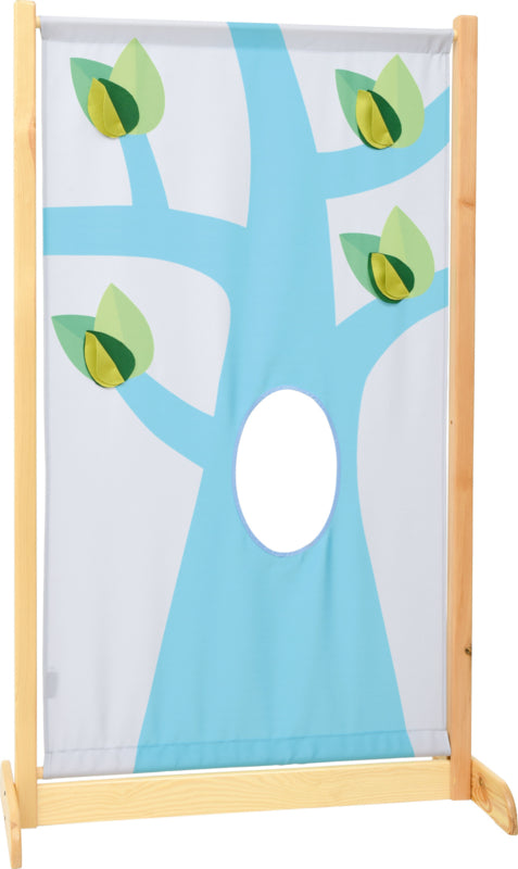 Een kleurrijk scherm met venster om een ruimte te verdelen of op te vrolijken.
