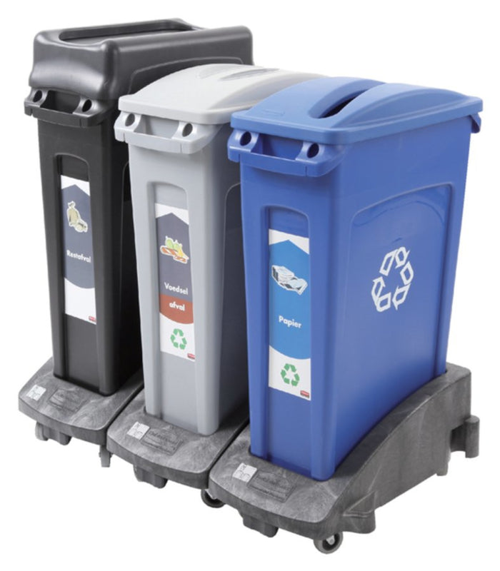 - Deksels in diverse kleuren en soorten openingen tbv recycling.
