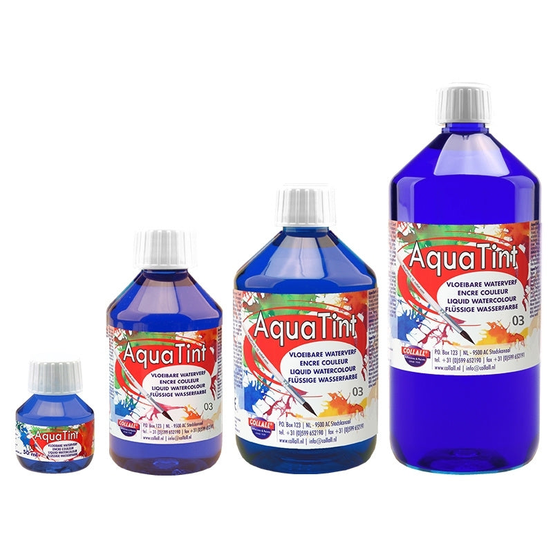 AquaTint is een sterk geconcentreerde vloeibare waterverf met hoogwaardige kleurstoffen. Geeft kleur aan papier, filterpapier, tissues, karton (eierdozen), hout, en andere absorberende materialen (wattenbollen/schijfjes). Veel technieken zijn mogelijk met behulp van: penseel, druppel-pipet, rietje blazen, spatraam, sprayflacon, refill-brush, waskrijtjes enz.