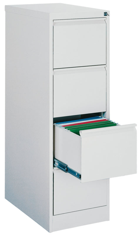 Archiefkast gemaakt van plaatstaal met een basis van verzinkt plaatstaal. Laden zijn voorzien van dubbele uitschuifbare kogellagers, beschermd tegen vallen. Kasten hebben een speciaal mechanisme waardoor slechts een lade tegelijk kan worden geopend, waardoor de kast wordt beschermd tegen kantelen. De laden zijn uitgerust met een centraal vergrendelingsmechanisme. Het maximale laadvermogen van elke lade is ongeveer 60 kilo. Er zijn zelfklevende kaarthouders beschikbaar die overeenkomen met het aantal laden. Kasten kunnen waterpas gezet worden.