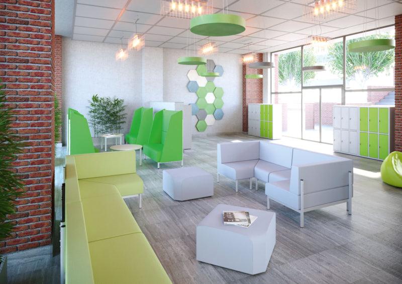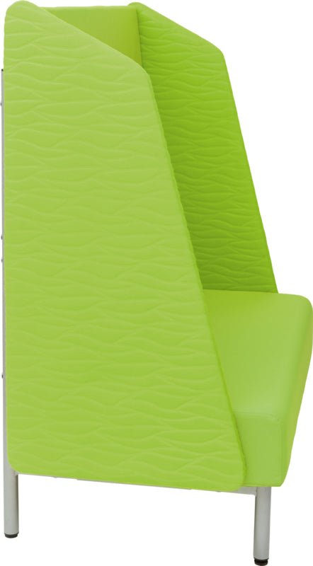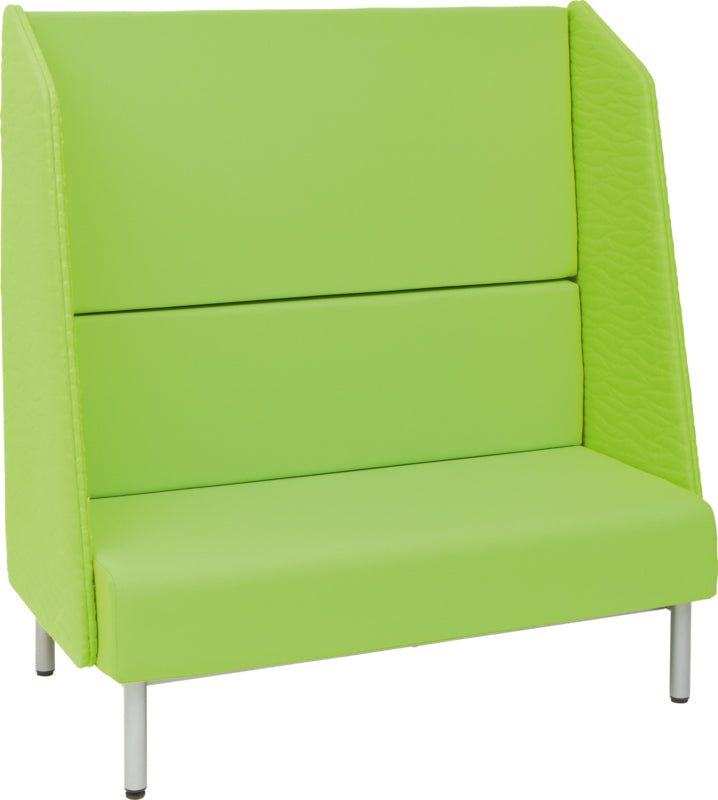 Bank met hoge zijkanten. Een perfecte plek voor een rustige omgeving, terwijl het hoofd wordt ondersteund. Gemaakt van schuim bedekt met vlamvertragende stof. Frame gemaakt met metalen profielen. Bankzijkanten van gelakt multiplex of multiplex bedekt met vilt.