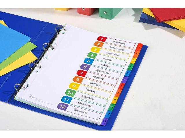 Avery ReadyIndexâ„¢, voorbedrukt tabblad, karton, 12-delig, A4, assorti