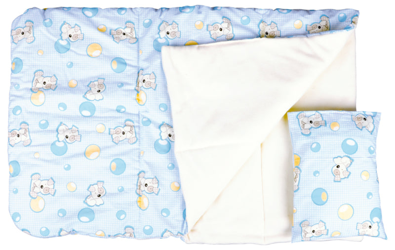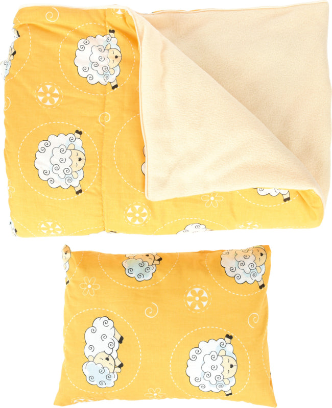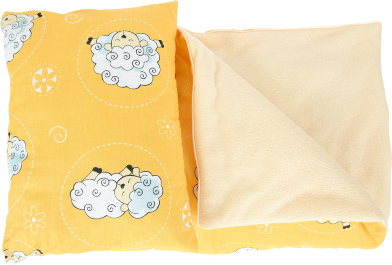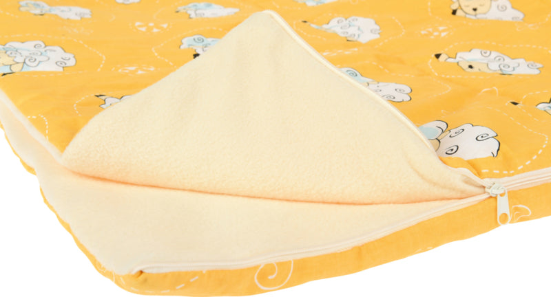 Babyslaapzak met katoenen hoes en polar fleece, met kussen.