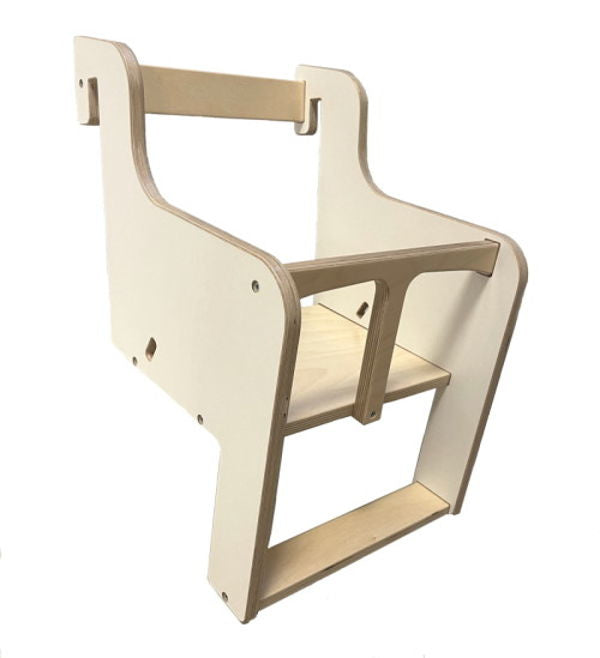 Babyzitje voorzien van wit decor, zodat de allerkleinsten ook veilig aan tafel kunnen meedoen.