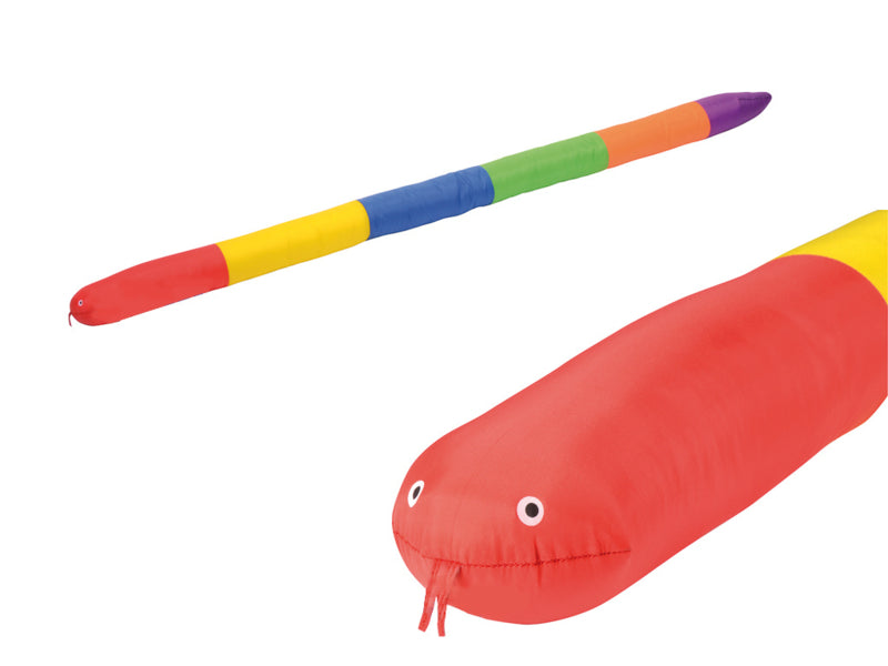 Kleurrijk en zacht onder de voeten is de katoenzachte, kleurrijke slang met een gezicht.