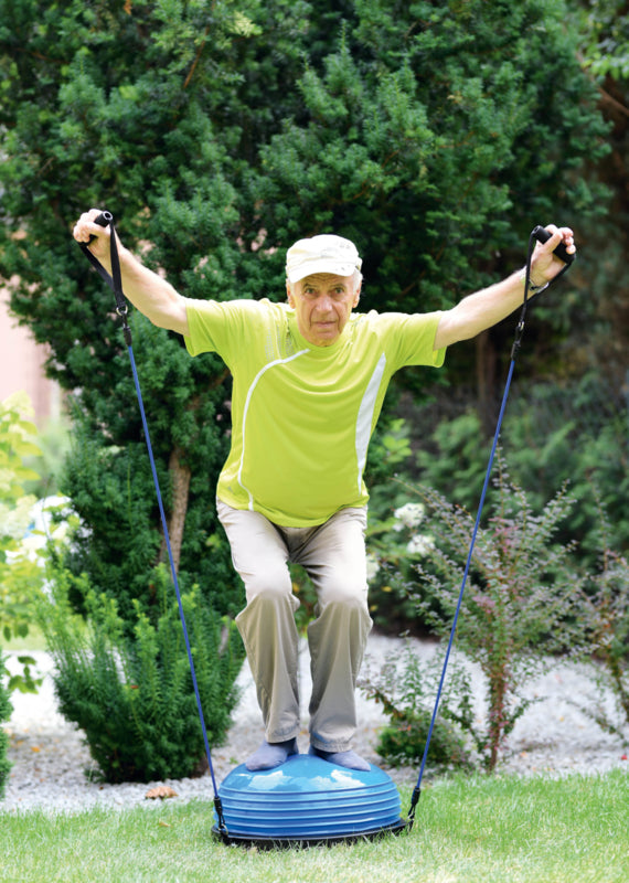 De balanstrainer is een apparaat waarmee verschillende spiergroepen kunnen worden getraind, waaronder taille, buik, rug, benen en armen. Twee flexibele handgrepen helpen het evenwicht op het apparaat te houden en de spieren van de handen te oefenen. Gemaakt van PVC en polypropyleen, rekbare TPR thermoplastische rubberen banden, handgrepen met schuim.