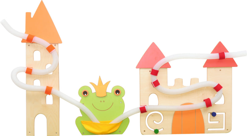 De ballenbaan wordt bevestigd met kleurrijk klittenband.