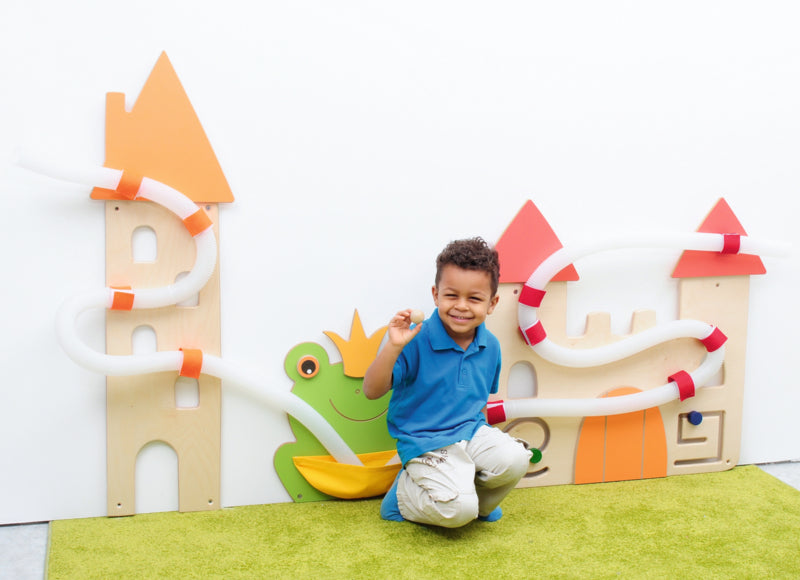Applicaties met ballenbuis van kleurrijk MDF en gelakt multiplex.