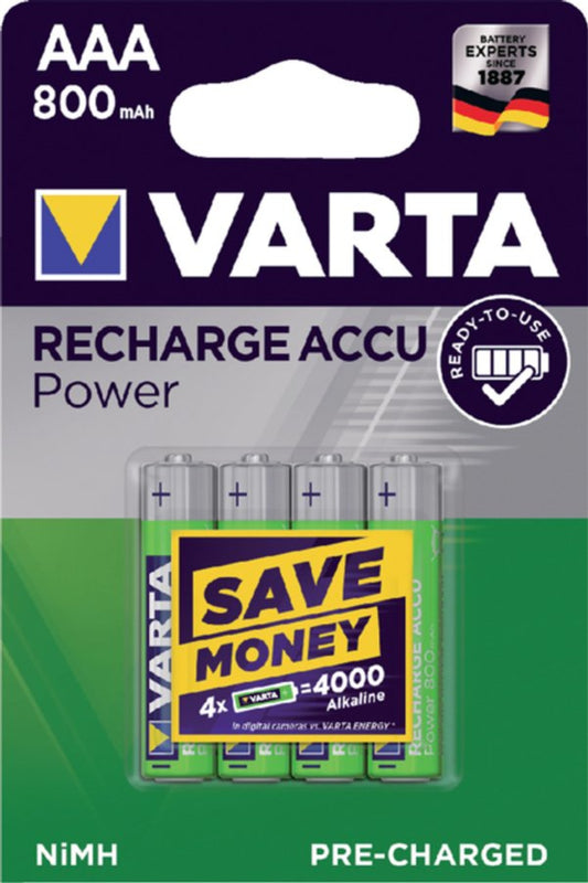 Batterij oplaadbaar Varta 4xAAA 800mAh ready2use