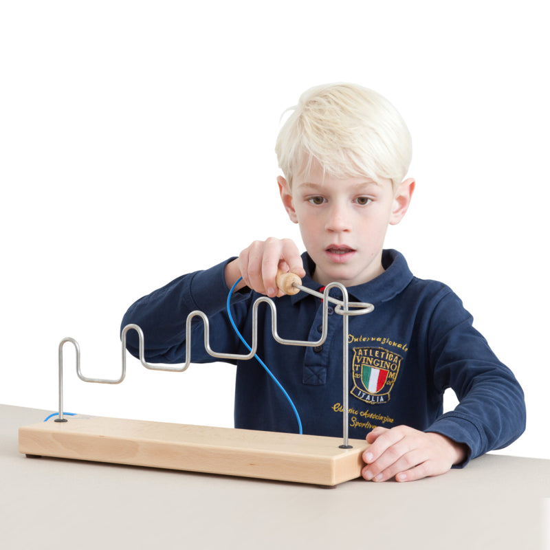 Probeer zonder de stang te raken de andere kant van het bord te bereiken, maar pas op want zodra je contact maakt klinkt er een geluid en moet je opnieuw beginnen.