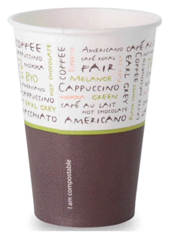 - Biologisch afbreekbare beker gemaakt van hernieuwbare grondstof cellulose en voorzien van een PLA (maiszetmeel) coating.