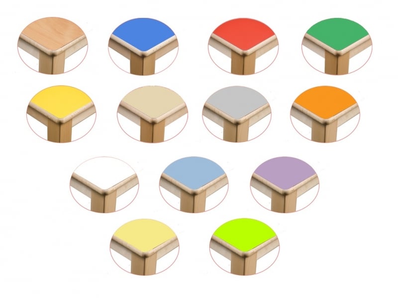 De tafelbladen kunnen in 13 kleuren geleverd worden.