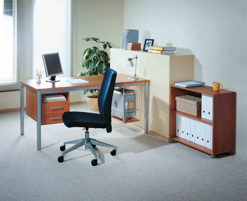 Meubelset van gelamineerd spaanplaat in een elzen kleur (dikte 18 mm.). Randband dikte 0,5 en 2 mm. Met metalen poten in een aluminium kleur.
