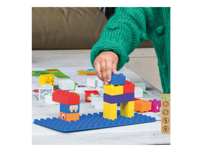 Het speelgoedbord heeft precies dezelfde maat en functionaliteit als het speelgoedbord van andere bekende merken. Het grote verschil is het materiaal, bestaande merken maken hun speelgoedblokken en speelgoedborden nog grotendeels van ABS-kunststof. ABS Plastic is afkomstig uit aardolie en is zeer vervuilend tijdens de productie. Ook is ABS-kunststof niet gemakkelijk te recyclen en wordt het afgedankte ABS verbrand in de verbrandingsoven. Dit heeft al vele jaren geresulteerd in een ongekende CO2-uitstoot. De BiOBUDDi speelgoedplaat is niet gemaakt van een op olie gebaseerde grondstof, maar van ons BiOBUDDi plantaardig materiaal.
