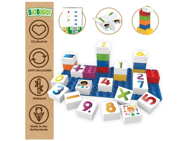 Gemaakt van een duurzame zijstroom van suikerriet, zijn deze blokken niet alleen veilig voor uw kind, maar ook zacht voor het milieu. De Numbers Learning Set is een bouwsteen speelgoed dat plezier en educatie combineert. Met kleurrijke blokken met getallen van 0 tot 9 kunnen kinderen op een interactieve en boeiende manier rekenconcepten verkennen. Ze ontwikkelen essentiële tel-, sorteer- en matchingvaardigheden terwijl ze genieten van de tactiele ervaring van bouwen en creëren.