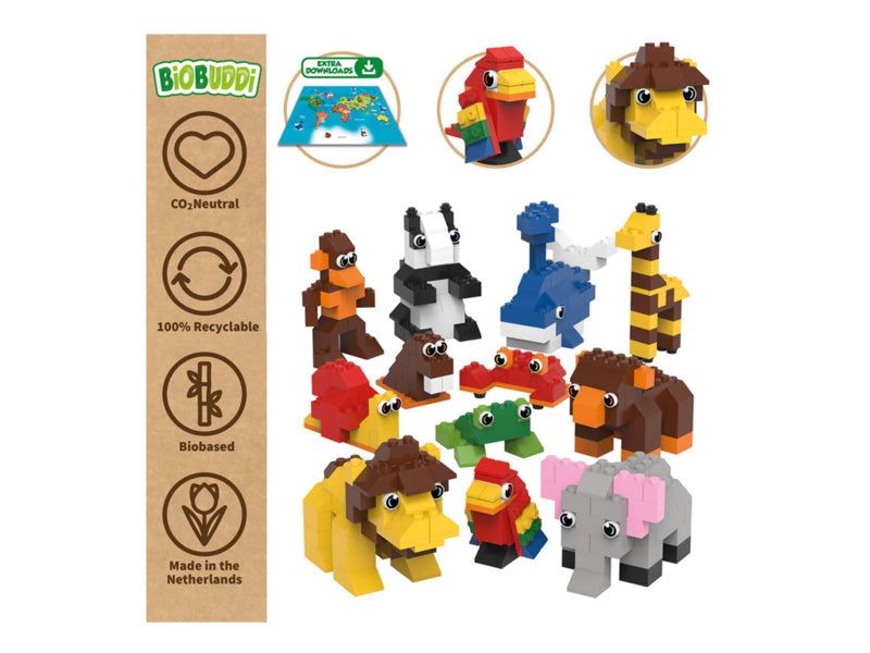 - Alle BiOBUDDi-bouwstenen zijn milieuvriendelijk, ecologisch, duurzaam en gemaakt van de onbruikbare reststoffen van de suikerrietplant.