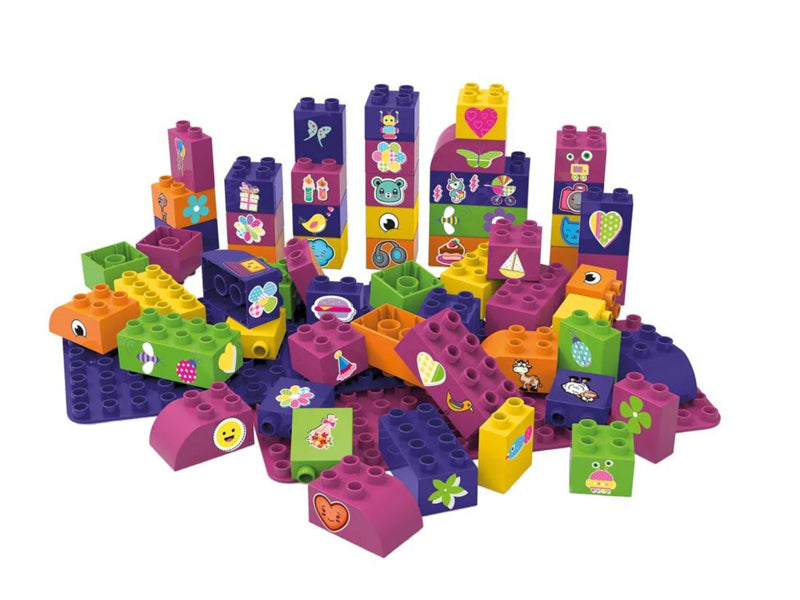 Wat zou je vandaag willen bouwen? Wil je een groot kasteel creëren met een versierde hal om een feest met zoete muffins te organiseren? Maak het op de grondplaat met de educatieve blokken!