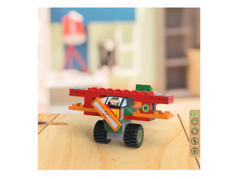 Iedereen is aan boord. Steek de oplader uit het vliegtuig. Praat met de toren en vertrek in stilte. Deze set geeft uw kinderen van 4 tot 99 een voorproefje van de toekomst, van elektrische voertuigen. Spelen en bouwen met BiOBUDDi is nog nooit zo spannend geweest. De nieuwe BiOBUDDi speelset ELECTRIC PLANE zit boordevol actie en plezier! Met deze creatieve set kunnen kleintjes leren hoe ze hun eigen voertuigen kunnen bouwen en creëren! BiOBUDDi-speelgoedsets zijn perfect voor het ontwikkelen van vroege bouw- en rollenspelvaardigheden bij kinderen van 4 tot 99 jaar, met stenen die speciaal zijn ontworpen om veilig te zijn voor kleine handjes. Elk model is eenvoudig te bouwen en helpt je kind spelenderwijs te leren.