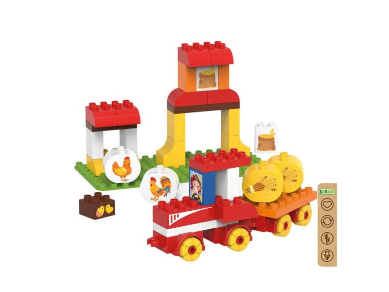Met deze set kunnen kinderen van 1,5 tot 6 jaar hun eigen graanboerderij bouwen. Kinderen bouwen alles volgens een meegeleverde handleiding. Stap voor stap bouwen ze de graantrekker en vervolgens de boerderij waar het graan wordt opgeslagen. Ook zitten er leuke dieren in deze speelset. Er is de kip en natuurlijk de haan. Kinderen leren omgaan met blokken en leren spelenderwijs allerlei vaardigheden. Een heel leuk setje om te geven aan een opgroeiende peuter of kleuter die volop in ontwikkeling is.