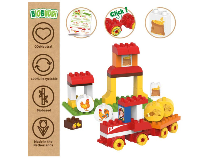 Bouw je eigen graanboerderij met de 39 verschillende bouwdelen. De set wordt geleverd met een mooie opbergverpakking met handvat. Alle verpakkingen van BiOBUDDi zijn FSC goedgekeurd en dus milieuvriendelijk. Ga dus samen met je zoon of dochter aan de slag en maak je eigen graanboerderij.