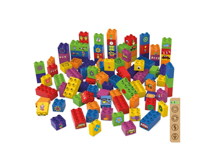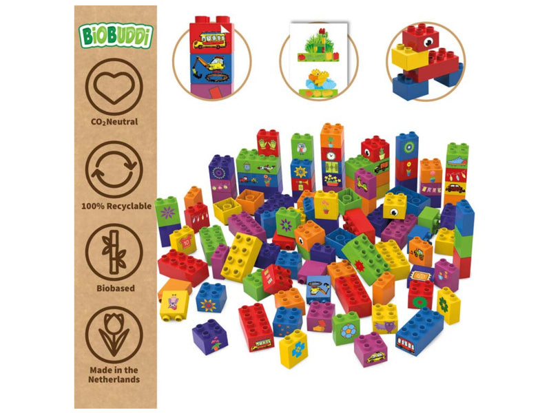 Het kan met de 100 educatieve blokken van BiOBUDDi! Door de grote hoeveelheid blokken zijn de mogelijkheden eindeloos en kunnen kinderen allerlei creaties bouwen.