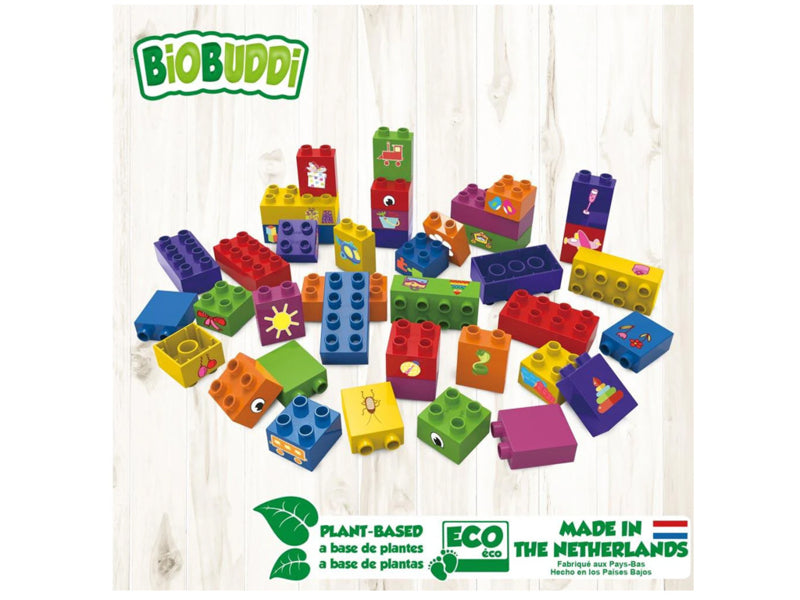 Leer bouwen met de 40 educatieve blokken van BiOBUDDi! Vergroot het doorzettingsvermogen en het probleemoplossend vermogen van kinderen door samen torens en andere creaties te bouwen met het bio speelgoed van BiOBUDDi. De kleurrijke blokken sluiten aan bij de belevingswereld van kinderen en stimuleren hen om de mooiste bouwwerken en werelden te bouwen.
