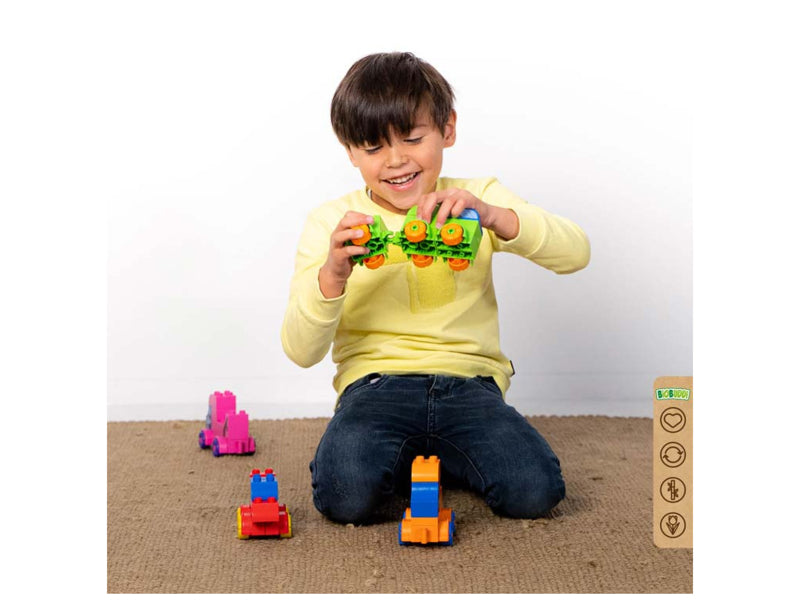 Bouw je eigen auto's met de 40 verschillende bouwdelen. De set wordt geleverd met een mooie opbergverpakking met handvat. Alle verpakkingen van BiOBUDDi zijn FSC goedgekeurd en dus milieuvriendelijk. Ga dus samen met je zoon van dochter aan de slag en maak je eigen toffe auto's.