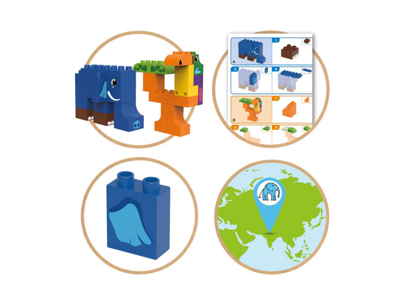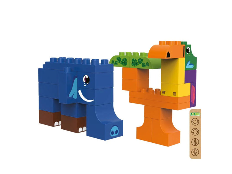 Ga mee op avontuur in de jungle met de Jungle set van BiOBUDDi! Bouw een vrolijke olifant, een mooie toekan of een andere creatie met de milieuvriendelijke blokken van BiOBUDDi. Gebruik je fantasie of volg het educatieve leerboekje om de dieren te bouwen. Spelen en bouwen met blokken stimuleert de ontwikkeling van motorische, creatieve en cognitieve vaardigheden bij jonge kinderen. Daarnaast zullen peuters en kleuters veel plezier beleven aan het bouwen van de olifant en toekan en het bedenken van allerlei verhalen.