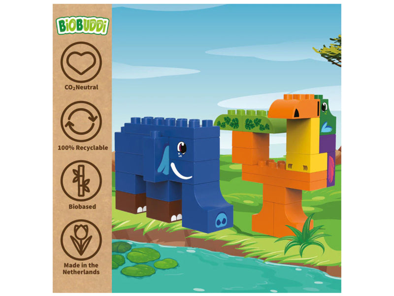 Spelen en bouwen met BiOBUDDi blokken is erg leuk en leerzaam. De speelgoedblokken in deze set zijn gemaakt van de resten van de suikerrietplant en zijn van natuurlijke oorsprong. Het educatief speelgoed wordt in Nederland geproduceerd en is milieuvriendelijk en recyclebaar. Deze blokken zijn compatibel met de blokken van andere merken. In het leerboekje staat een uitleg over van welk materiaal en hoe het product wordt gemaakt. BiOBUDDi staat daarnaast garant voor uren veilig en verantwoord speelplezier.
