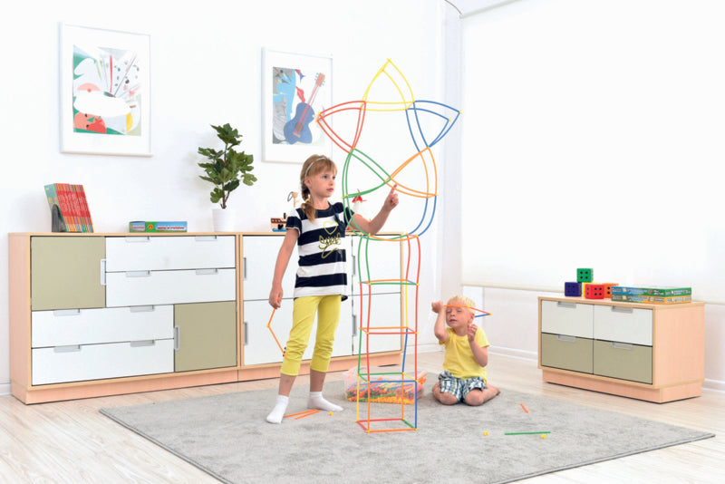 Een set plastic rietjes en connectors die het mogelijk maken de rietjes eenvoudig met meerdere rietjes te combineren. Er kunnen verschillende vormen gemaakt worden - van platte figuren tot grote, zeer gecompliceerde constructies. De set wordt in een plastic doos met handvat geleverd.
