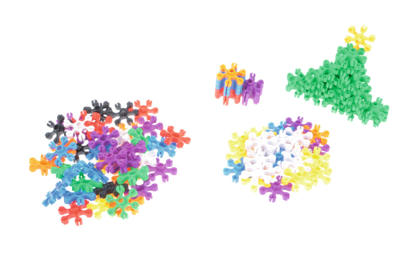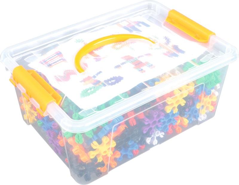 Sneeuwvlokken gemaakt van plastic in handige opbergbak.
