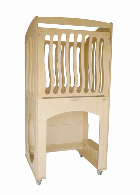 Enkele verrijdbare box voorzien van kantelhekje en speelse golfuitsparingen. Onze boxen zijn vervaardigd uit hoogwaardige materialen. Het hekje is voorzien van met 1 hand bedienbare sloten. Optioneel: boxkussen ecru of in kleur, spiegel voor in de speelruimte, frontwerk van de box in gewenste kleur gebeitst.