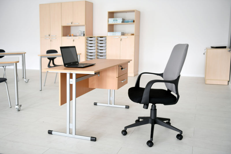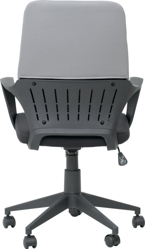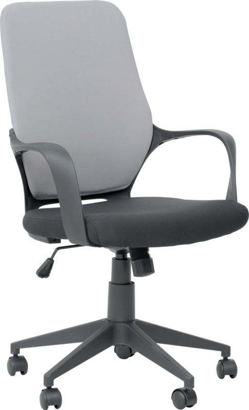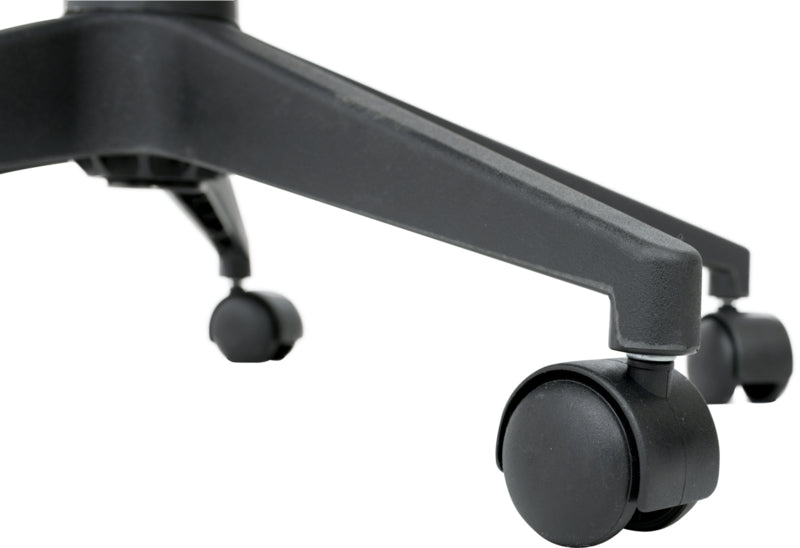 Uitgerust met een hoge, ergonomisch gevormde rugleuning, voor optimale ondersteuning van de wervelkolom. Gereguleerde hoge stoel op wielen. Materiaal: 100% synthetische vezel.