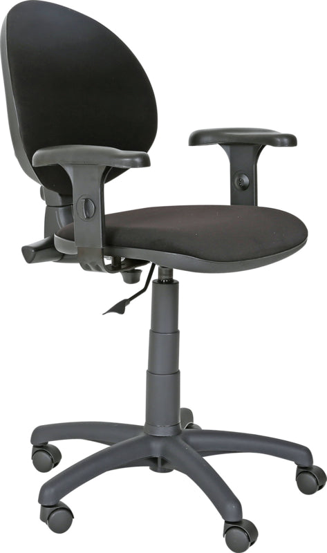 Ergonomisch roterende stoel met geprofileerde zitting, rugleuning en armleuningen met verstelbare hoogte.