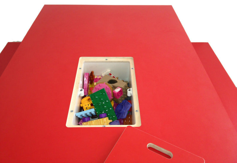 Deze tafel wordt geleverd met een opbergbak in het tafelblad.