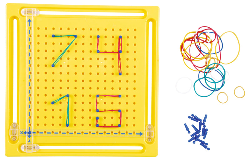 Plastic bord met coördinaten systeem met beweegbare X- en Y-as om het aan het taakniveau aan te passen.
