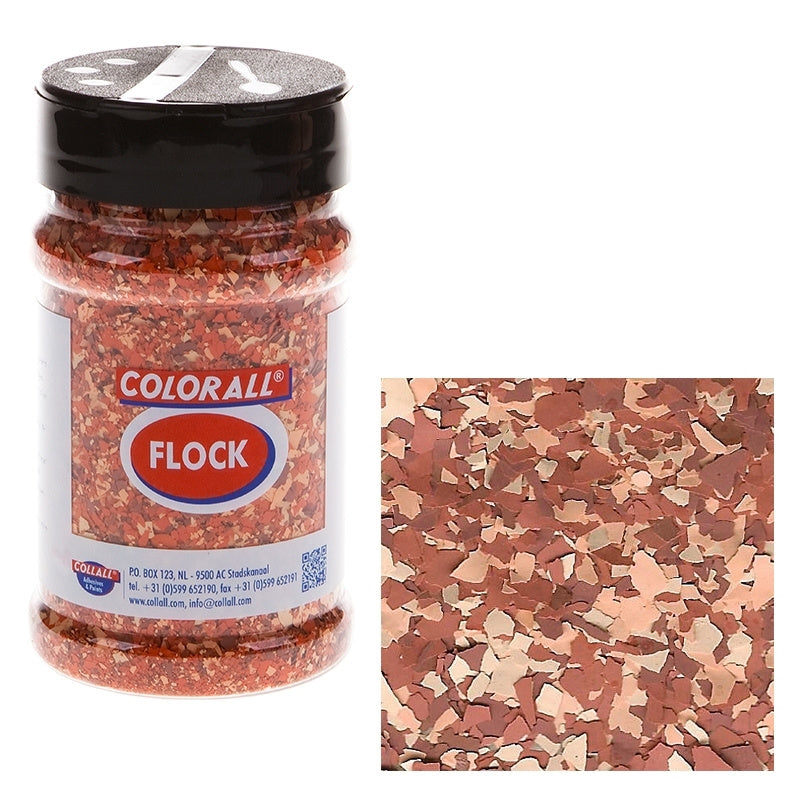 Breng een laag verf of Colorall Vernislijm aan. In deze nog natte verf of lijm strooit u de verfsnippers. Naarmate je van grotere hoogte strooit verdelen de verfsnippers zich gelijkmatiger (als sneeuw). De FLOCK verfsnippers kunnen met de hand vermalen worden om nog fijner te kunnen werken. Na droging voorzichtig met een schuurspons de losse delen wegschuren. Hierna kunt u met Collall Decoupagevernis / Collall Deco Sealer het geheel afwerken. Sterk zuigende materialen een keer voorbehandelen met bijvoorbeeld Colorall Gesso. Doordat de vlokken poreus zijn zuigen ze de kleur van de verf/ lijm gedeeltelijk op. FLOCK geeft op iedere kleur verf dus steeds een ander resultaat!