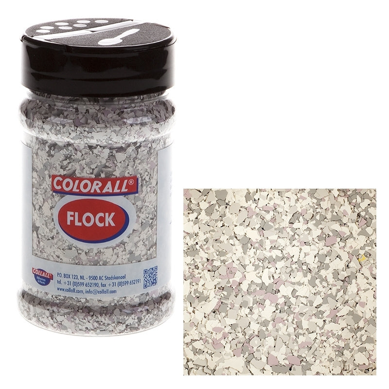 Breng een laag verf of Colorall Vernislijm aan. In deze nog natte verf of lijm strooit u de verfsnippers. Naarmate je van grotere hoogte strooit verdelen de verfsnippers zich gelijkmatiger (als sneeuw). De FLOCK verfsnippers kunnen met de hand vermalen worden om nog fijner te kunnen werken. Na droging voorzichtig met een schuurspons de losse delen wegschuren. Hierna kunt u met Collall Decoupagevernis / Collall Deco Sealer het geheel afwerken. Sterk zuigende materialen een keer voorbehandelen met bijvoorbeeld Colorall Gesso. Doordat de vlokken poreus zijn zuigen ze de kleur van de verf/ lijm gedeeltelijk op. FLOCK geeft op iedere kleur verf dus steeds een ander resultaat!