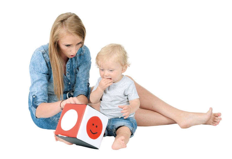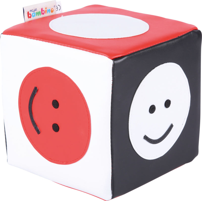 Foam kubus met geometrische patronen in contrasterende kleuren (wit, zwart, rood). Ze moedigen kinderen aan om creatief te spelen en hun zintuigen te stimuleren. Bedekt met duurzaam vinyl of PU, gemakkelijk schoon te houden.