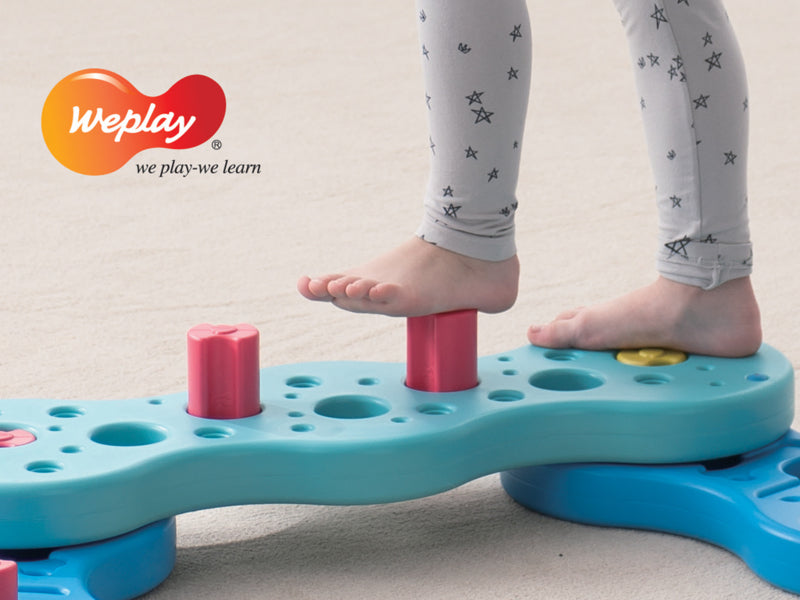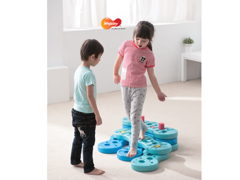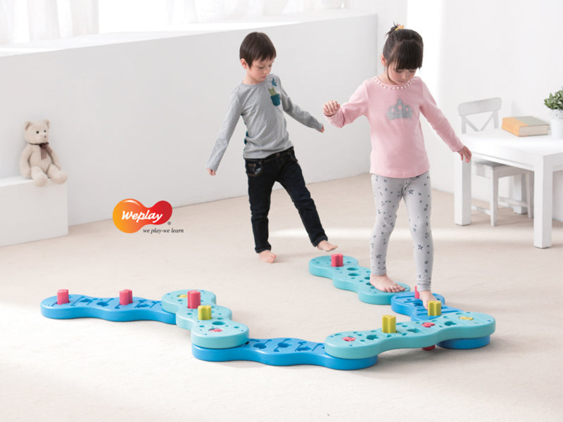 Inh. 6 evenwichtsplatforms (3 lichtblauw en 3 blauw) formaat 75 x 23 x 5,5 cm.