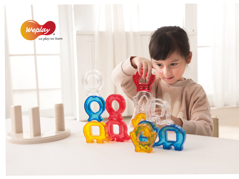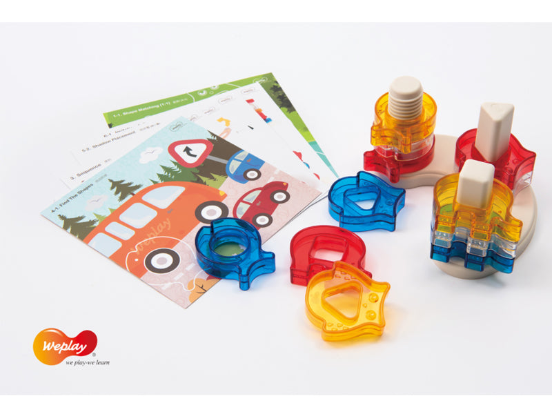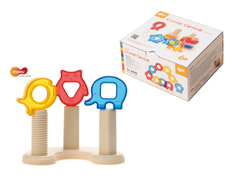Deze bouwstenen kunnen op de juiste basis geschroefd worden. De kinderen leren de verschillende vormen onderscheiden en oefenen hun oog-handcoordinatie.