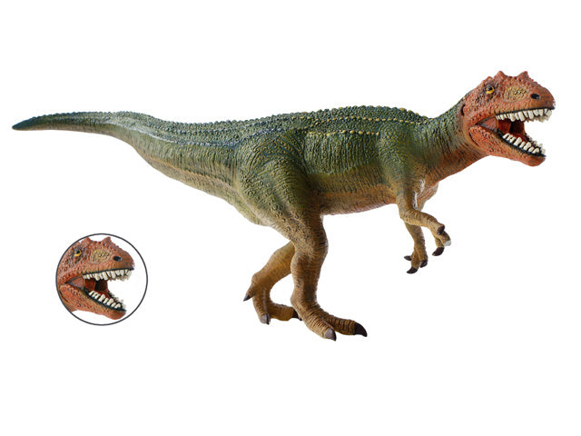 De giganotosaurus leefde ongeveer 90 - 100 miljoen jaar geleden in het Laat-Krijt in Argentinië. Het was vergelijkbaar met Tyrannosaurus Rex, een tweevoetige roofzuchtige dinosaurus. Met een lengte van 13 meter, een gewicht van 6-7 ton, was Giganotosaurus echter groter en zwaarder dan een Tyrannosaurus Rex. Hij had ook langere armen en drie vingers aan elke hand. Onderzoekers vermoeden dat Giganotosaurus tot 14 m per seconde kan rennen. De naam - Giganotosaurus - is samengesteld uit de woorden gigas (reus), notos (zuiden) en sauros (hagedis). Giganotosaurus is dus een gigantische hagedis uit het zuiden. De figuur is naturalistisch met de hand geschilderd. De onderkaak van de figuur kan worden bewogen, zodat Giganotosaurus de jacht op prooien goed kan vastgrijpen.