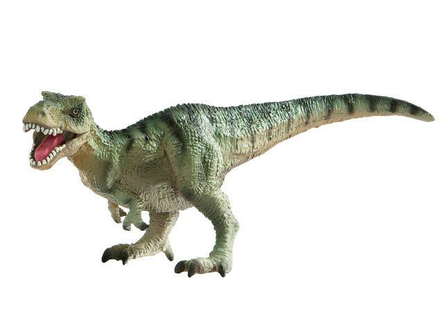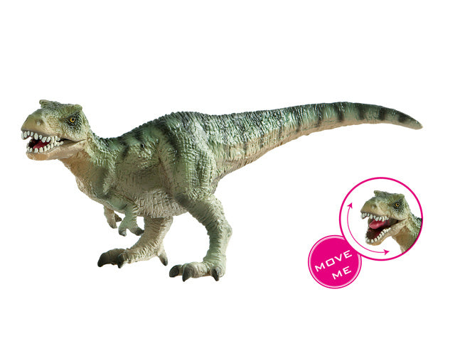 De Tyrannosaurus is een van de grootste onder carnivoren - een koning onder roofzuchtige reptielen. Het was ongeveer 13 meter lang, 4 meter hoog en had een enorme schedel met 15 cm lange dolktanden. Met een enkele stap kon de Tyrannosaurus bijna 4 meter afleggen. Het leefde ongeveer 70 miljoen jaar geleden in Noord-Amerika. De figuur is naturalistisch met de hand geschilderd. De onderkaak van het personage is beweegbaar, zodat Tyrannosaurus de jacht op prooien goed kan vastpakken.