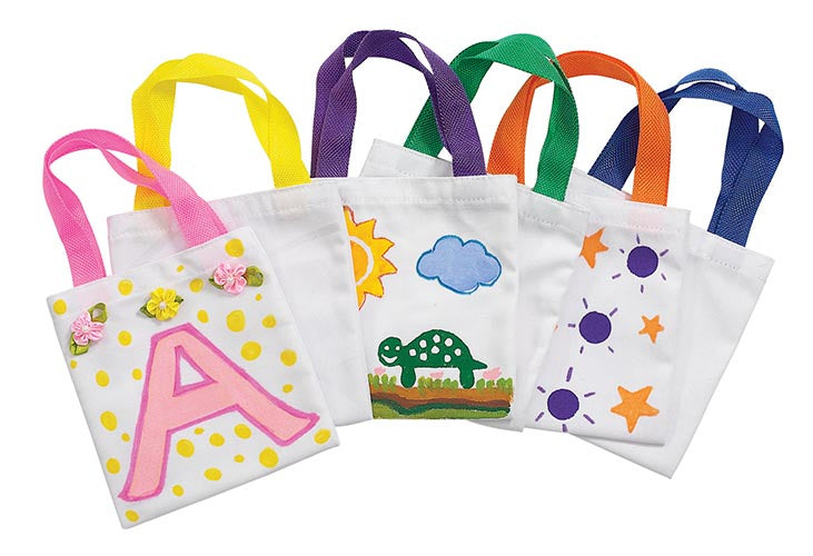 Witte katoenen draagtasjes met een gekleurd hengsel.