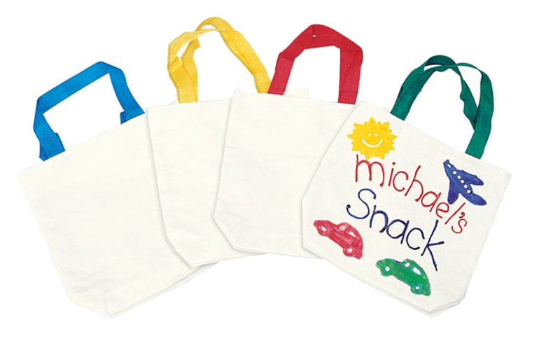 Witte katoenen draagtassen met een gekleurd hengsel.